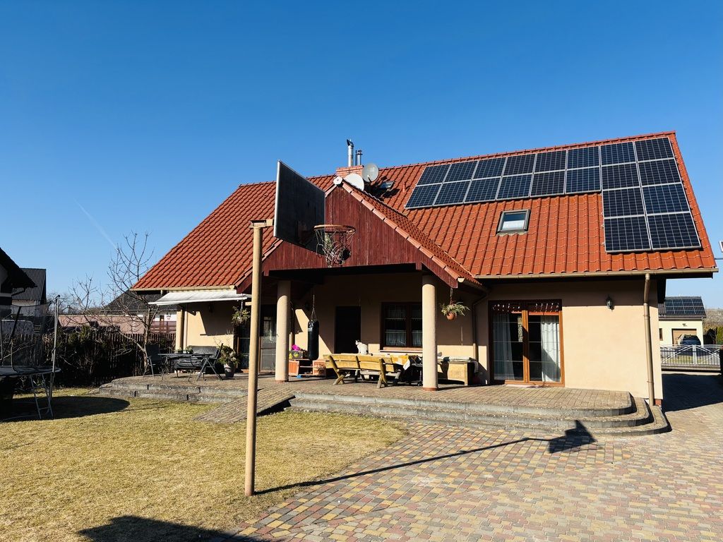 - Media i technologia: dom posiada instalację Fotowoltaiczną (5,4 kW), ogrzewanie podłogowe (piec gazowy dwufunkcyjny), światłowód, przydomową oczyszczalnię ścieków oraz stację uzdatniania wody. Niskie koszty utrzymania: gazowe ogrzewanie podłogowe zapewnia niskie rachunki, jest bardzo wydajne. Dodatkowo od marca do końca października ciepłą wodę zapewnia instalacja fotowoltaiczna.