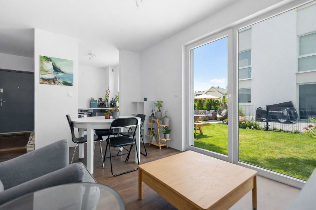 ogród o powierzchni ok. 90 m², który stanowi doskonałe przedłużenie części dziennej. To przestrzeń idealna na poranną kawę, rodzinne spotkania czy letnie wieczory w otoczeniu zieleni.