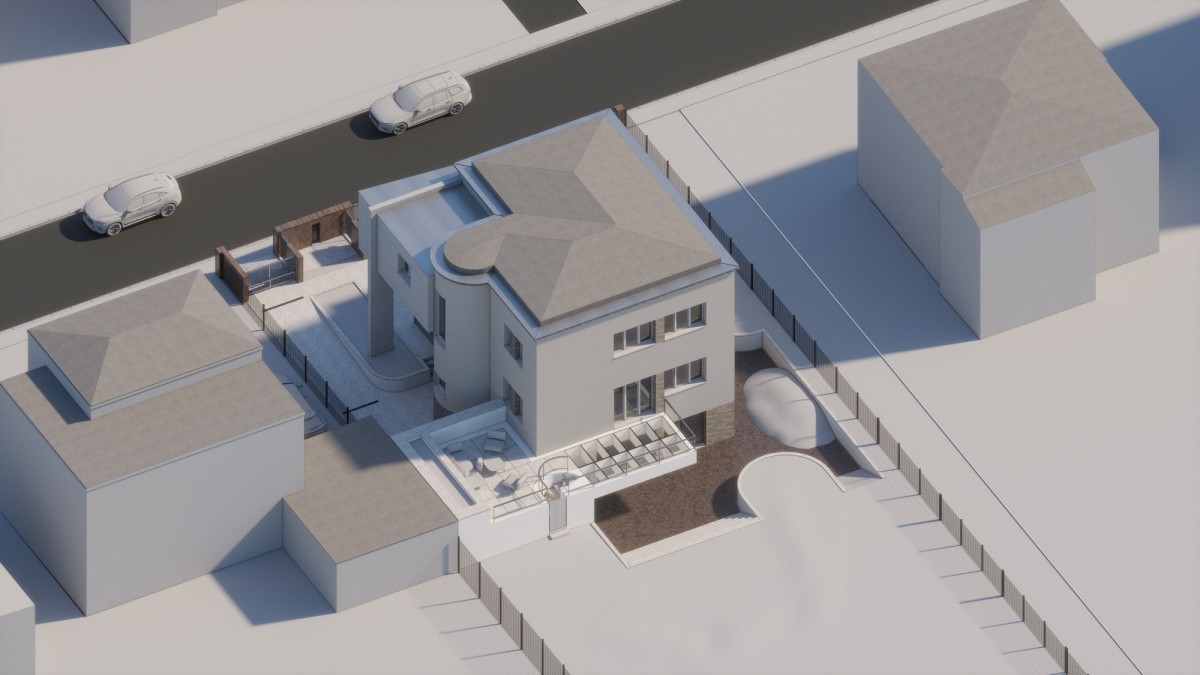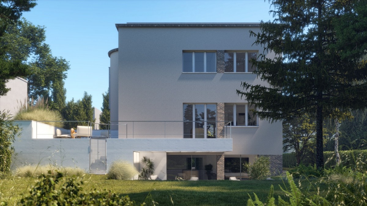 Projekt zakłada subtelne odnowienie elewacji, wymianę stolarki i uporządkowanie otoczenia, z poszanowaniem historii budynku i zapisanych w nim warstw architektonicznych.