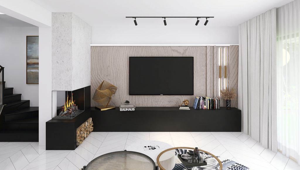 Budynek zaprojektowano z myślą o wygodnym użytkowaniu przez rodzinę, z wyraźnym podziałem na strefę dzienną i prywatną.