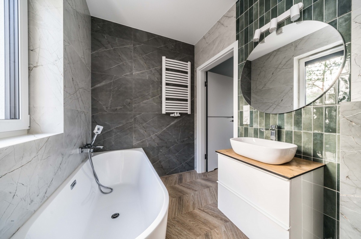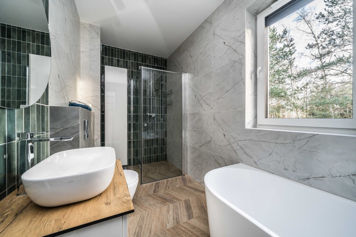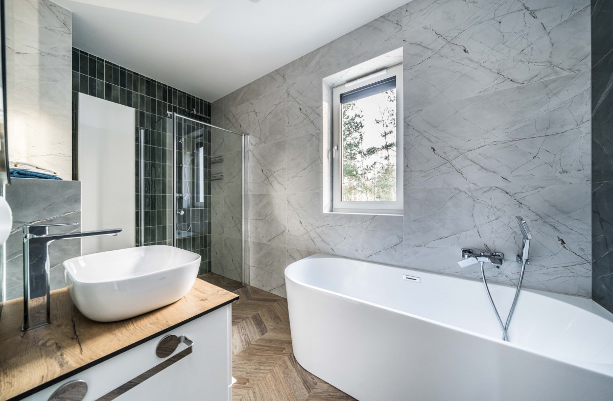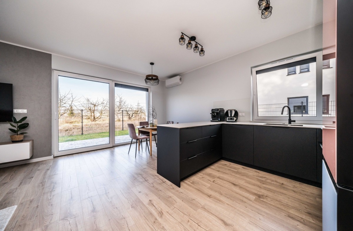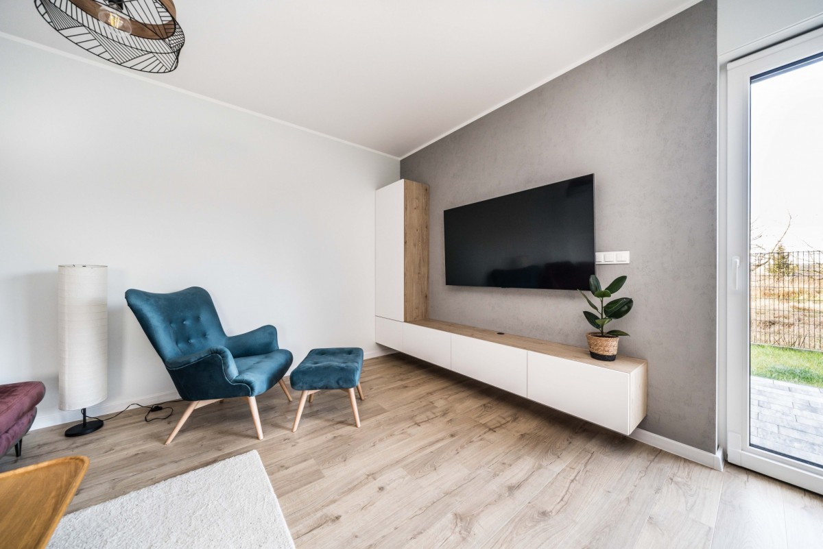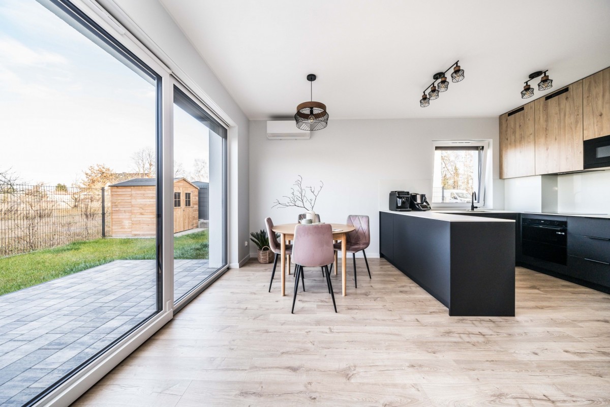 Pachnący jeszcze nowością dom urządzony w nowoczesny sposób, przy wykorzystaniu najwyżej jakości materiałów z dbałością o szczegóły.