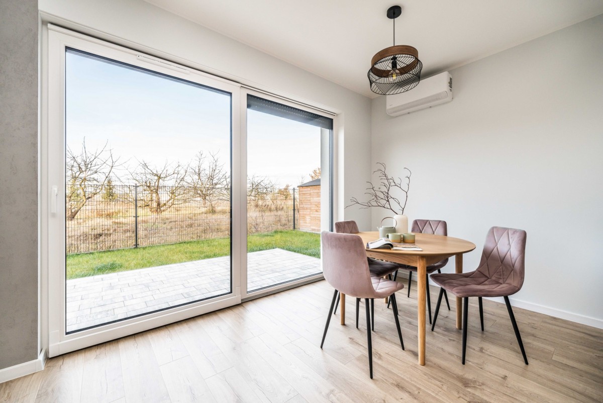 4. Okna PCV 6 komorowe w kolorze antracytowym od zewnątrz - białe od wewnątrz. Pakiet 3-szybowy.