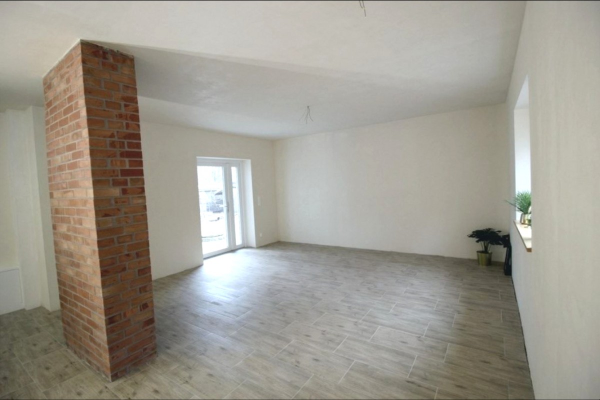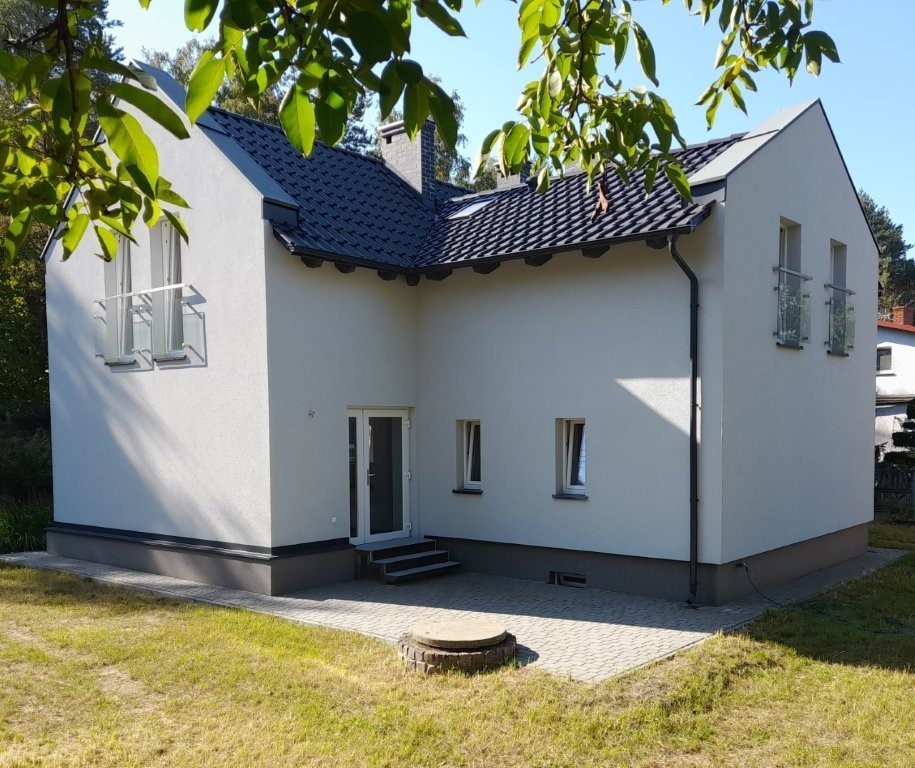Budynek zbudowany(przebudowa i nadbudowa ) od nowa (po istniejącym zostały fundamenty, piwnica i ściany zewnętrzne z czerwonej cegły )