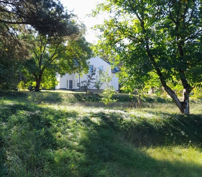 Działka ogrodzona 1404m2 zróżnicowane poziomy(tarasowa) dodaje uroku temu miejscu, liczny starodrzew, orzechy włoskie, laskowe, sosny, iglaki, założony sad : morele, czereśnie, brzoskwinie, wiśnie , śliwy, jabłonie morwy , ponadto liczne rośliny ozdobne róże, hortensje .