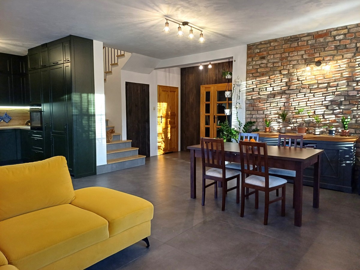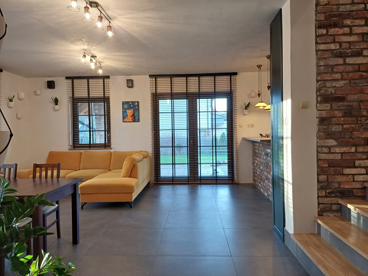 Budynek w bardzo dobrym standardzie, wykończony materiałami wysokiej jakości. Gotowy do zamieszkania (do zagospodarowania wg pomysłu nowego właściciela pozostaje górna łazienka).