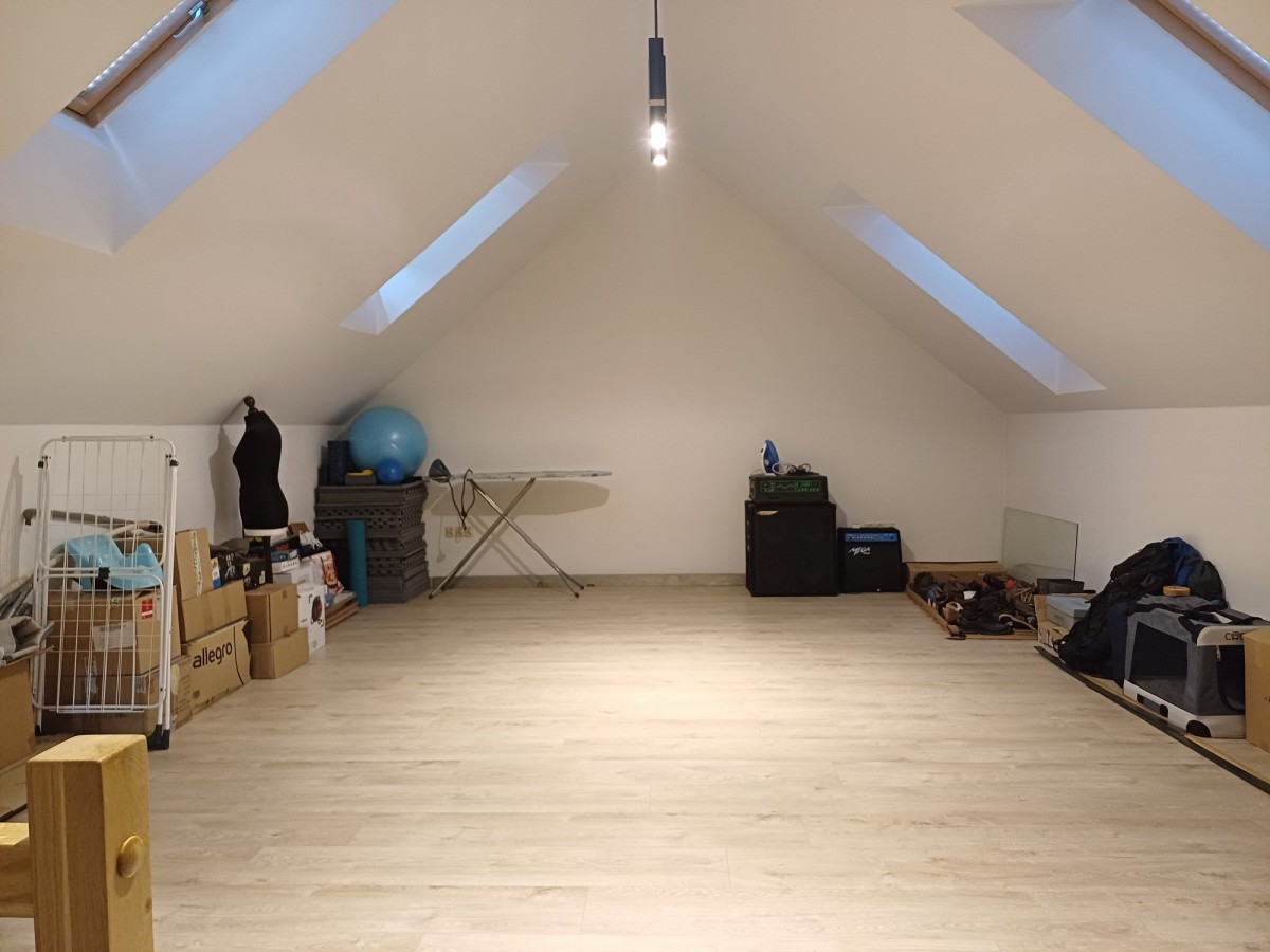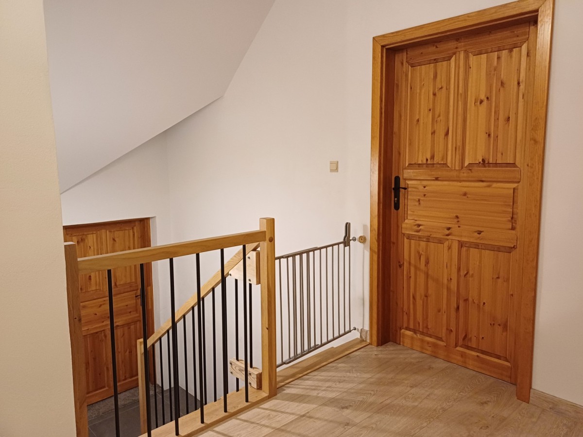 korytarz, 3 sypialnie, łazienka (do wykończenia), strych.