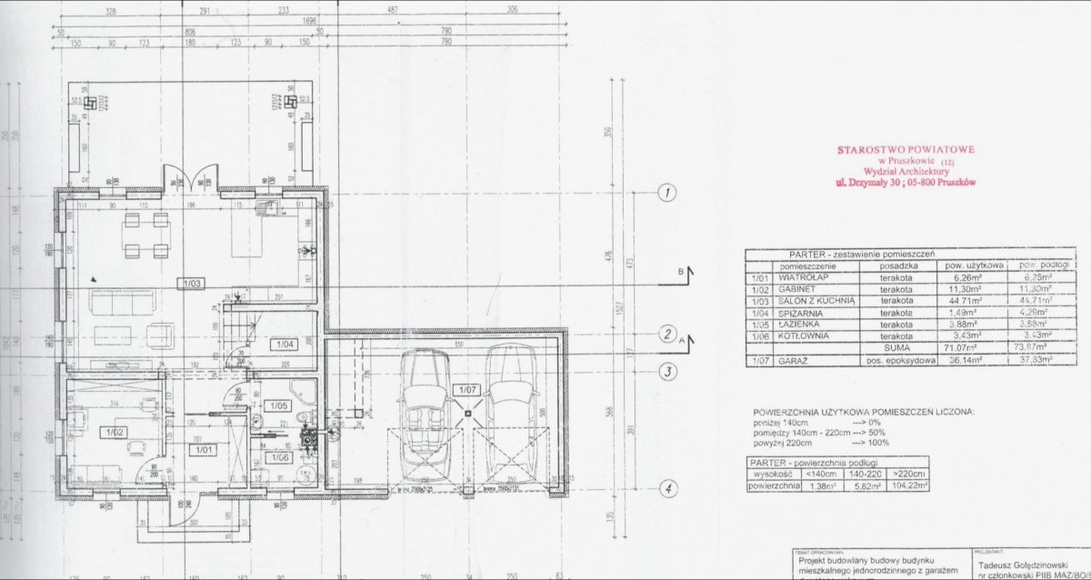 Parter: 71,07 m2 + pomieszczenie rekreacyjne nad garażem 37 m2 na półpiętrze: