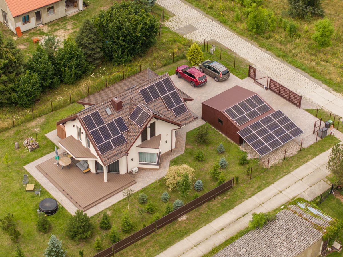 • Samowystarczalność: 15 kW fotowoltaika, gruntowa pompa ciepła, rekuperacja, oczyszczalnia