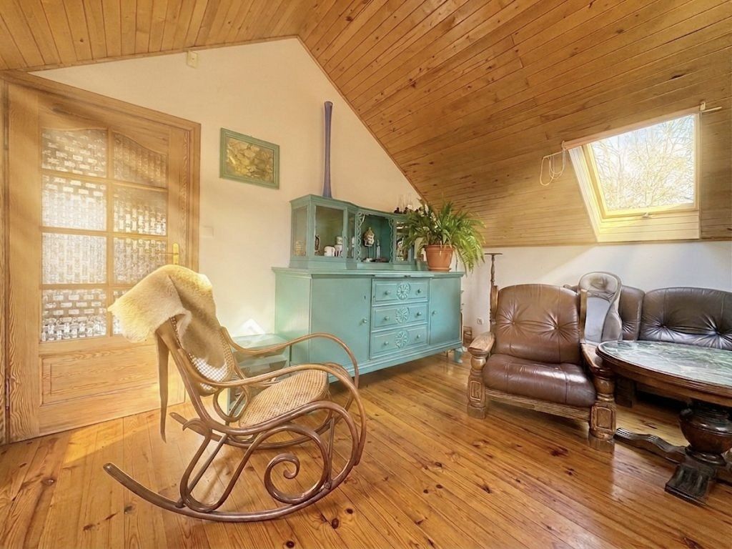 Dom jest wyposażony w nowoczesne okna (PCV oraz drewno), a dach pokryty został blachodachówką, co gwarantuje funkcjonalność i trwałość na lata. Dodatkowo, w bryle budynku znajduje się garaż, odrębne pomieszczenie na przestrzeń do pracy twórczej/biuro/warsztat oraz piwnica, co zwiększa praktyczność tej unikalnej oferty.