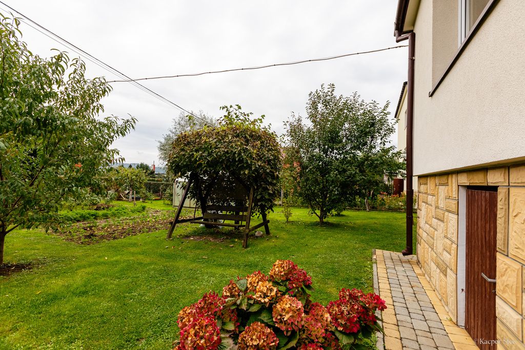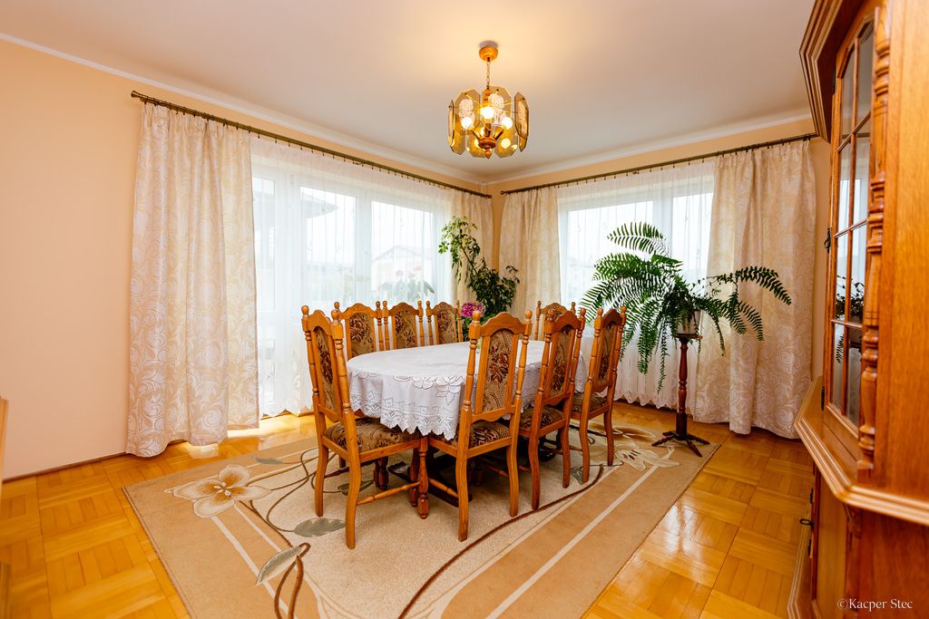 Rozkład pomieszczeń: Dom składa się z pięciu przestronnych pokoi, w tym dużego, jasnego salonu z wyjściem na ogród, funkcjonalnej kuchni oraz dwóch komfortowych łazienek. Układ pomieszczeń jest przemyślany i zapewnia wygodę nawet dla dużej rodziny.