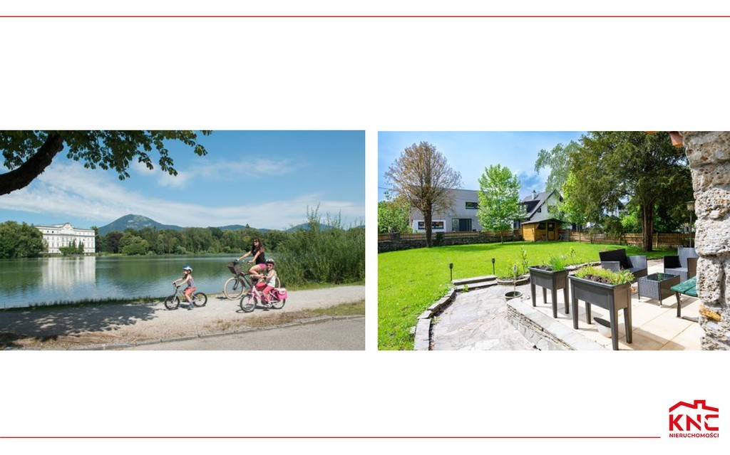 Lokalizacja: Leopoldskron to jedna z najbardziej pożądanych lokalizacji w Salzburgu. Znana jest z pięknej, historycznej zabudowy oraz malowniczej okolicy. Dom znajduje się w sąsiedztwie stawu Leopoldskroner Weiher oraz lasu Königswäldchen, co czyni to miejsce doskonałym do spacerów, uprawiania sportu i odpoczynku na świeżym powietrzu.