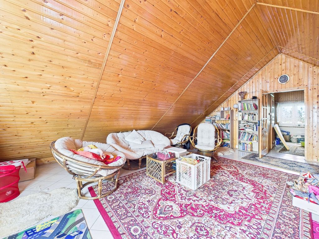 The plot has access to utilities (gas, electricity, water, and municipal sewer). Access to the estate is via a municipal road. The house, built in 1997, is well-maintained and requires no financial investment. Heating is provided by a gas furnace, and hot water is additionally heated by solar panels.
