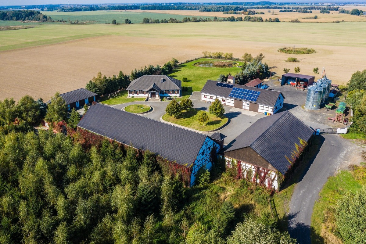 Działka na której posadowiona jest posiadłość ma powierzchnię 10,069 ha Własność. W części jest zabudowana i utwardzona w części wykorzystywana do produkcji rolnej.