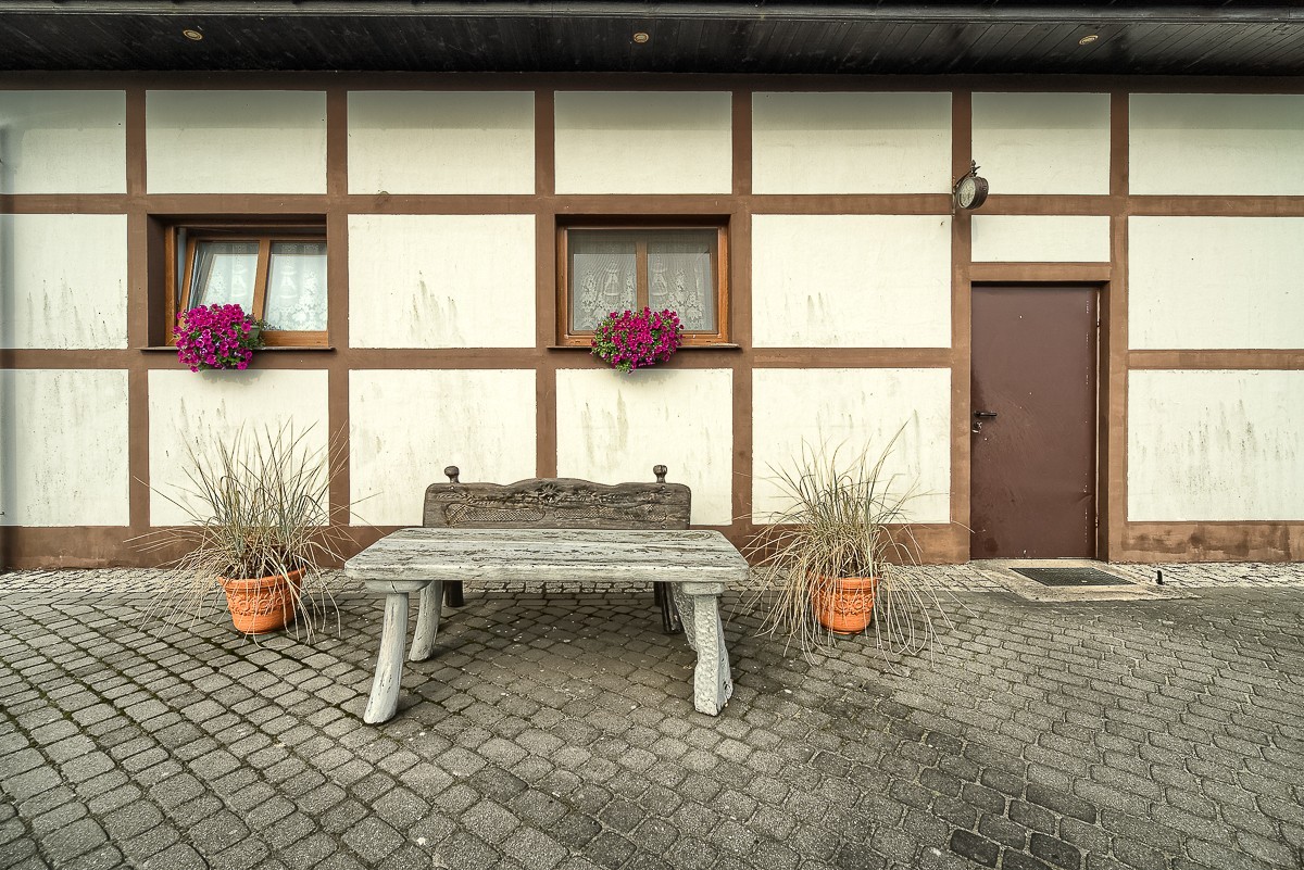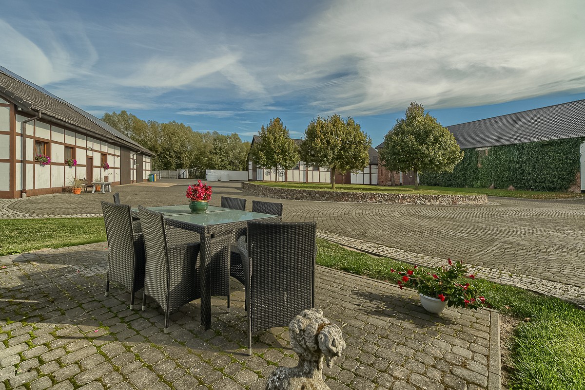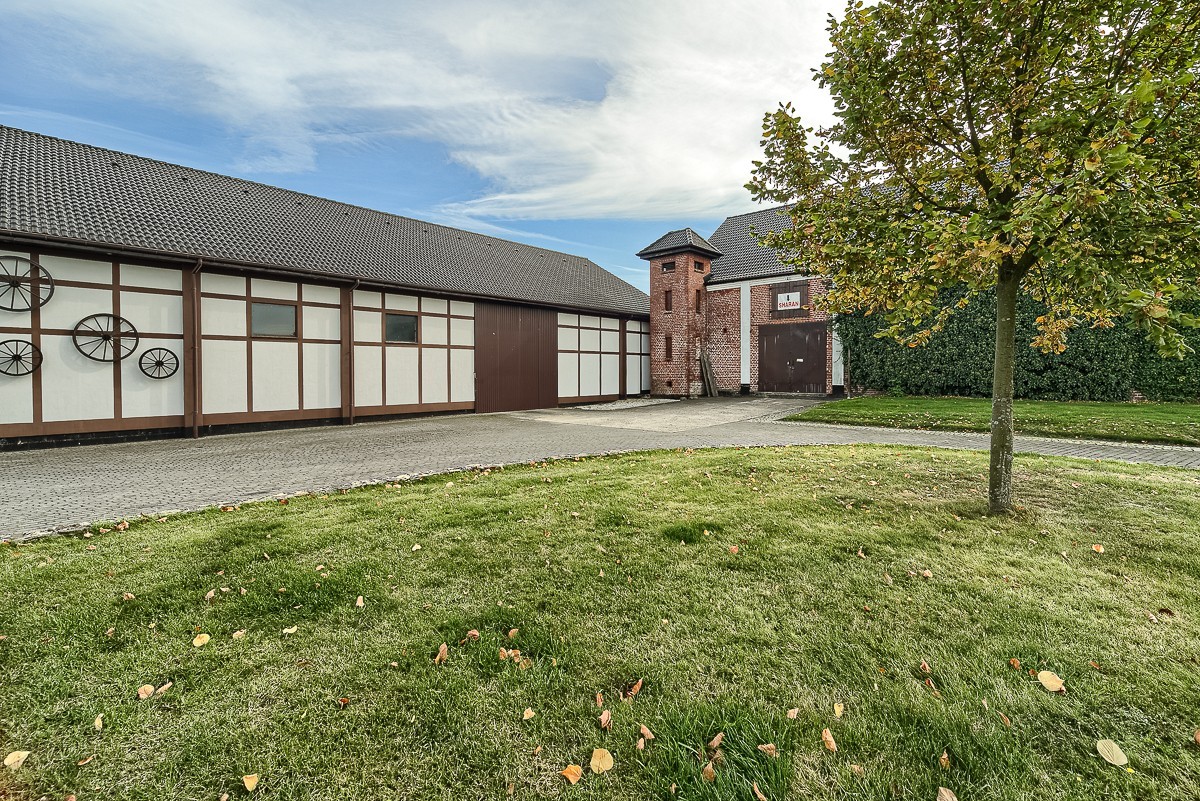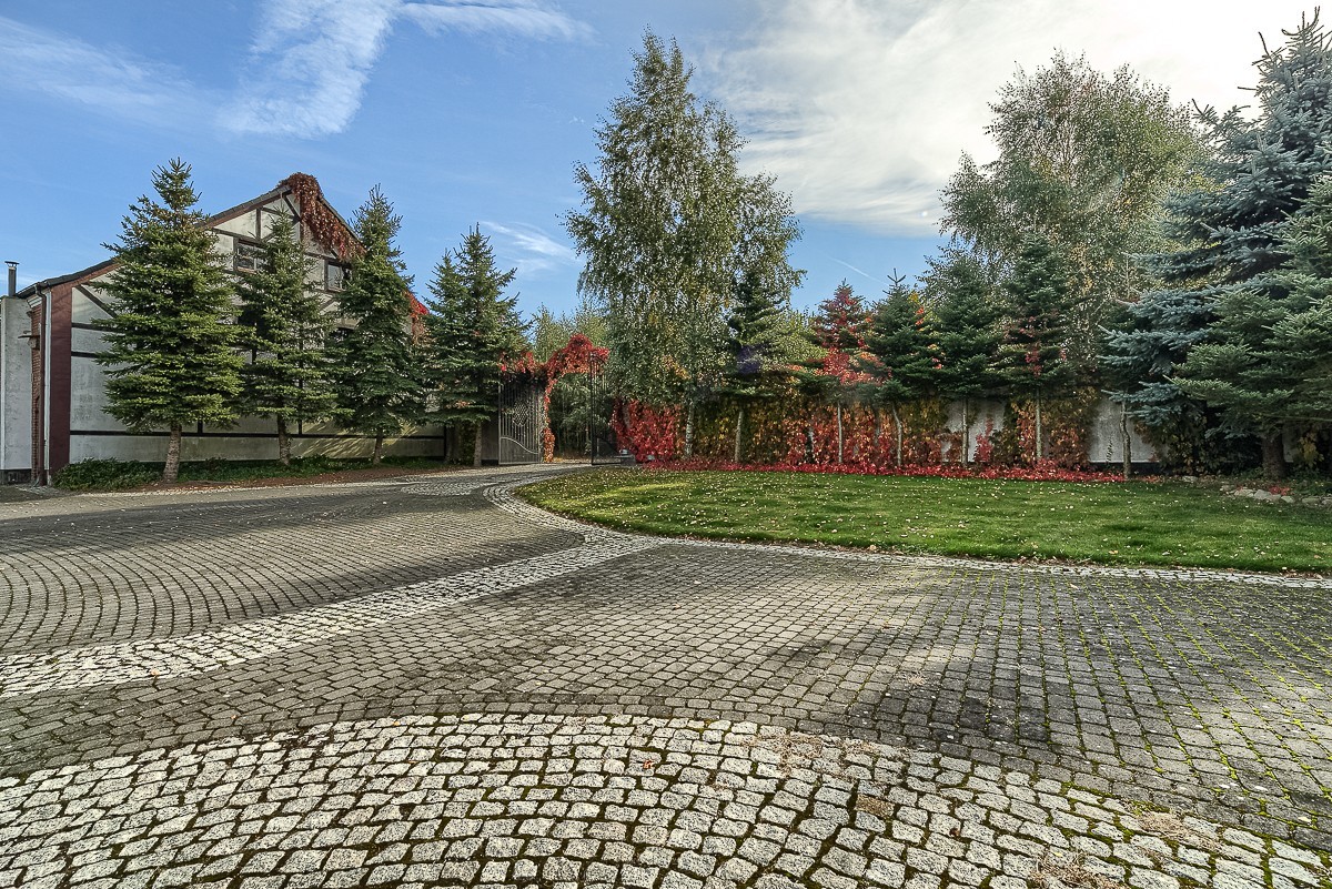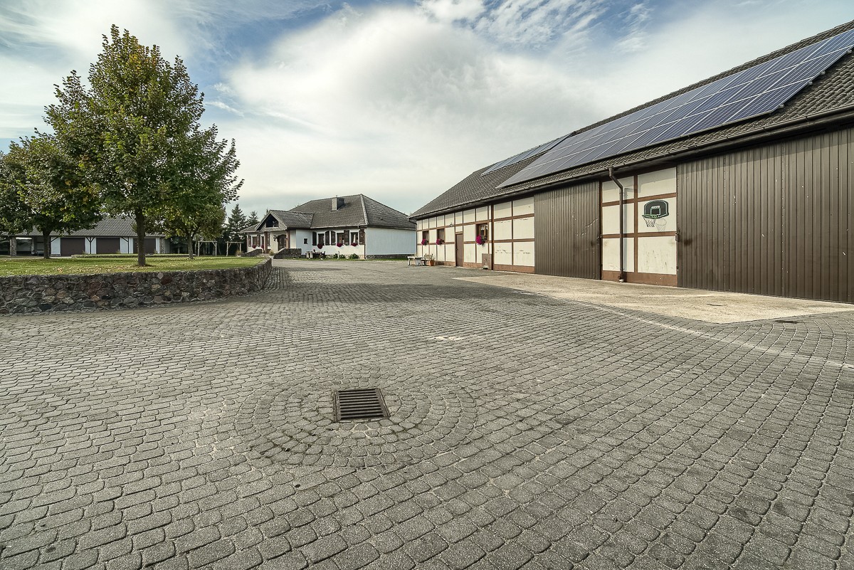 Wszystkie budynki gospodarcze pokryte dachówką cementową Braas. Budynek mieszkalny pokryty dachówką ceramiczną Braas.