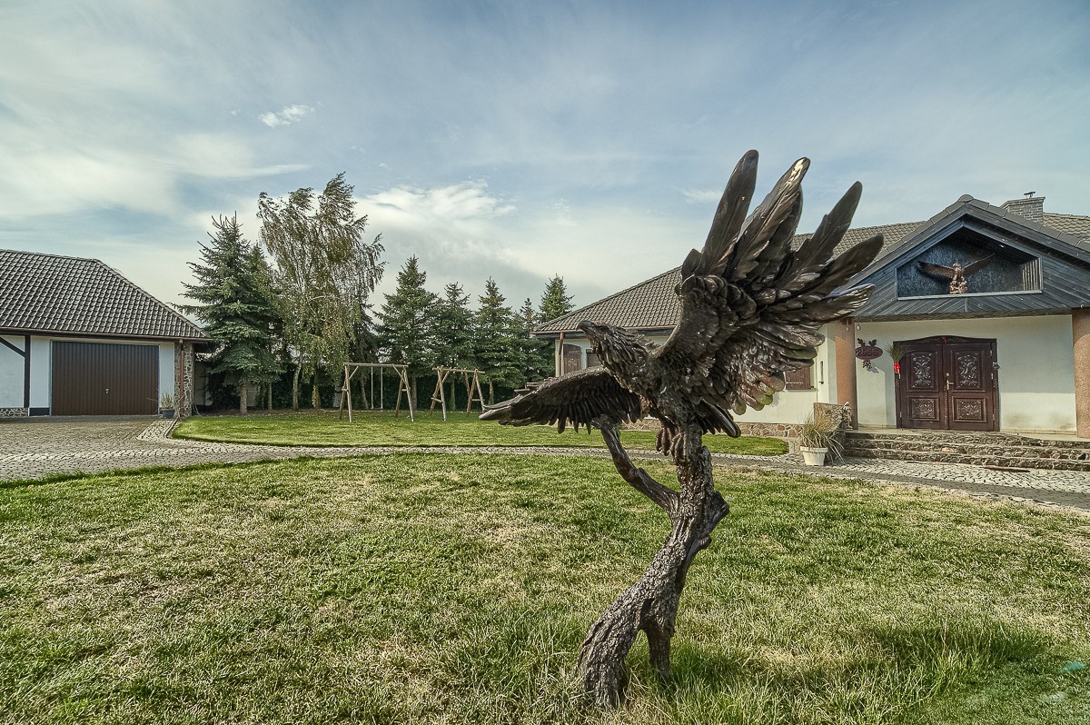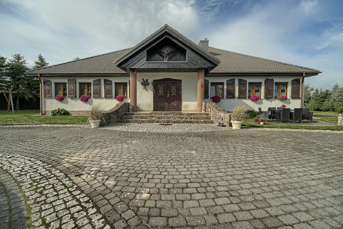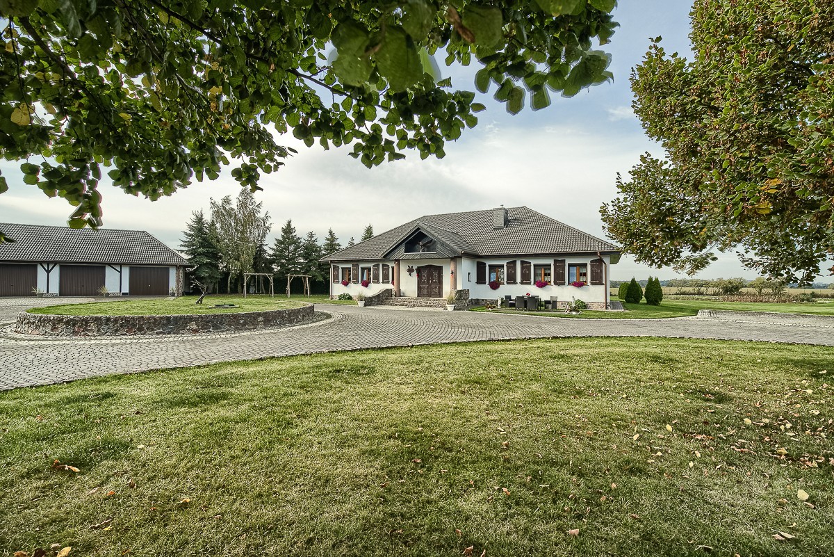 Dom wolnostojący z tarasem wybudowany w 2006 r. w stylu wiejskiej rezydencji.