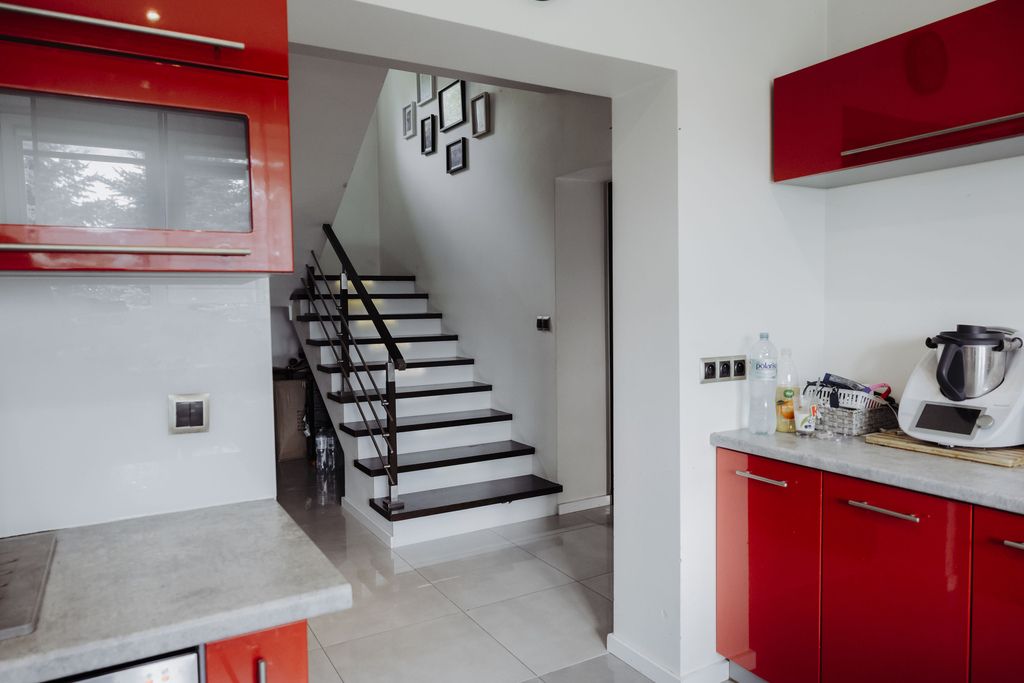 Znajdziesz tu przestronną kuchnię z meblami na wymiar, otwartą na jasny salon z kominkiem, w którym wieczory nabierają wyjątkowego klimatu. Dwie komfortowe łazienki, przytulne pokoje oraz duży taras w zacisznym miejscu ogrodu tworzą idealną przestrzeń dla rodziny.