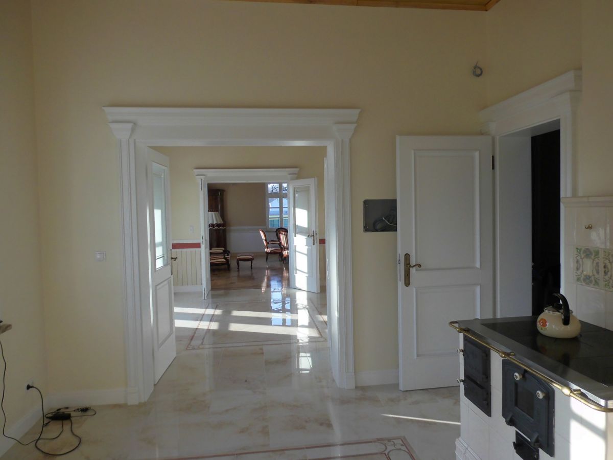 Wnętrza domu są przestronne, jasne i zaprojektowane z myślą o komforcie codziennego życia. Styl wykończenia jest spójny i elegancki, z wyraźnym nawiązaniem do klasyki.