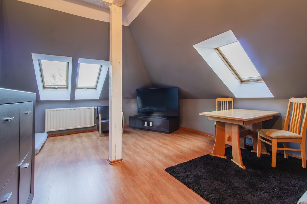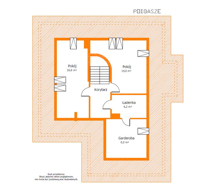 Na poddaszu znajduje się przytulny pokój (16,6 m²), sypialnia (14,0 m2) oraz łazienka (6,2 m²) z przejściem do ukrytego pomieszczenia, które może służyć za przechowalnię, garderobę lub saunę.