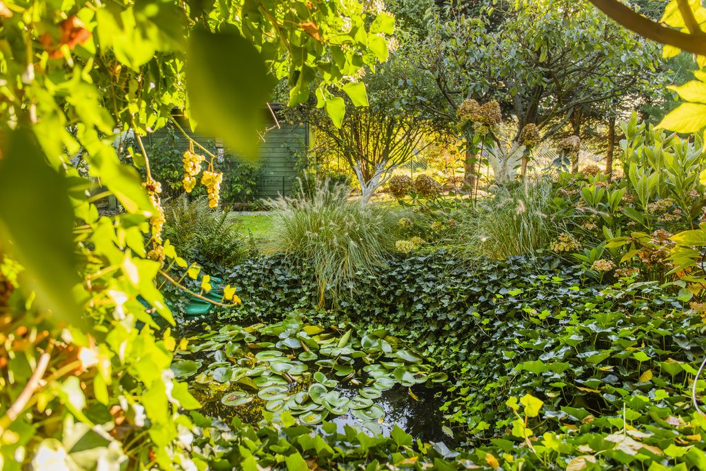 Zaraz za ogrodem znajduje się staw, który pięknie wpisuje się w otoczenie.