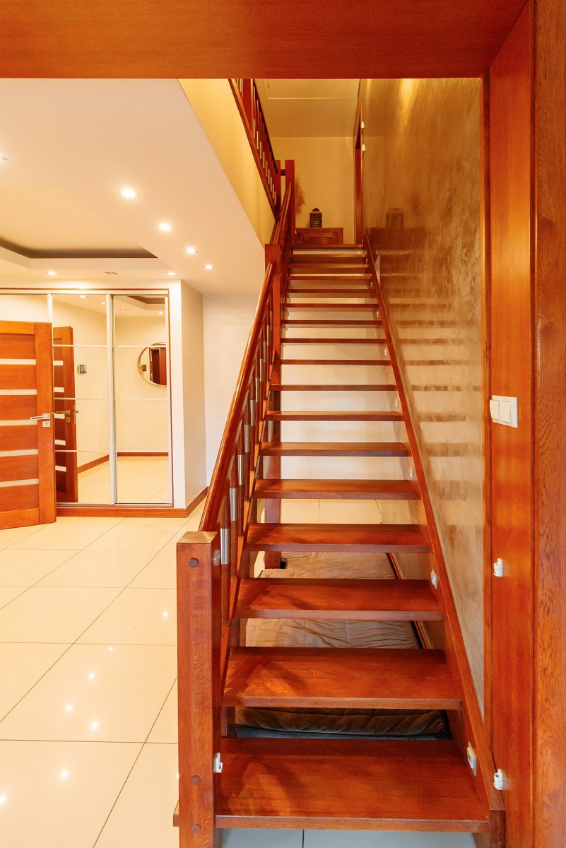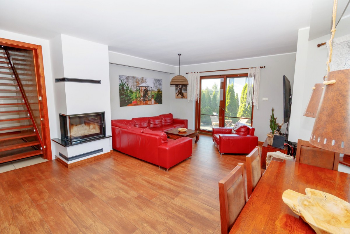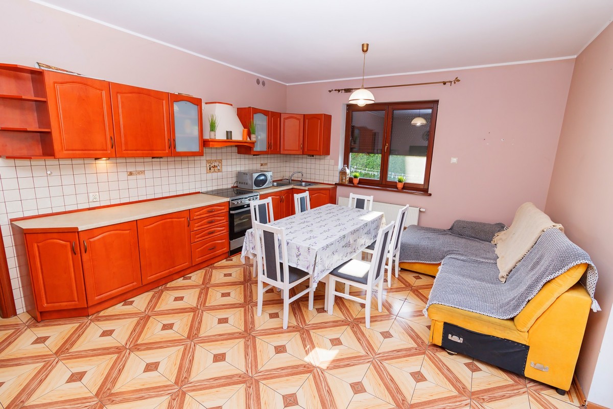 Dom jest ogrzewany nowoczesnym kotłem na pellet, a instalacja fotowoltaiczna 7,92 kW zapewnia niskie zużycie energii elektrycznej. Wykończony został wysokiej jakości materiałami, a na uwagę zasługuje m.in. wykonanie zabudowy kuchni czy całkowicie odnowiona łazienka na piętrze.
