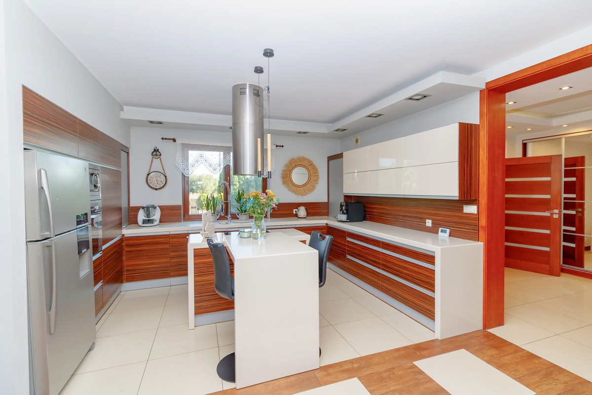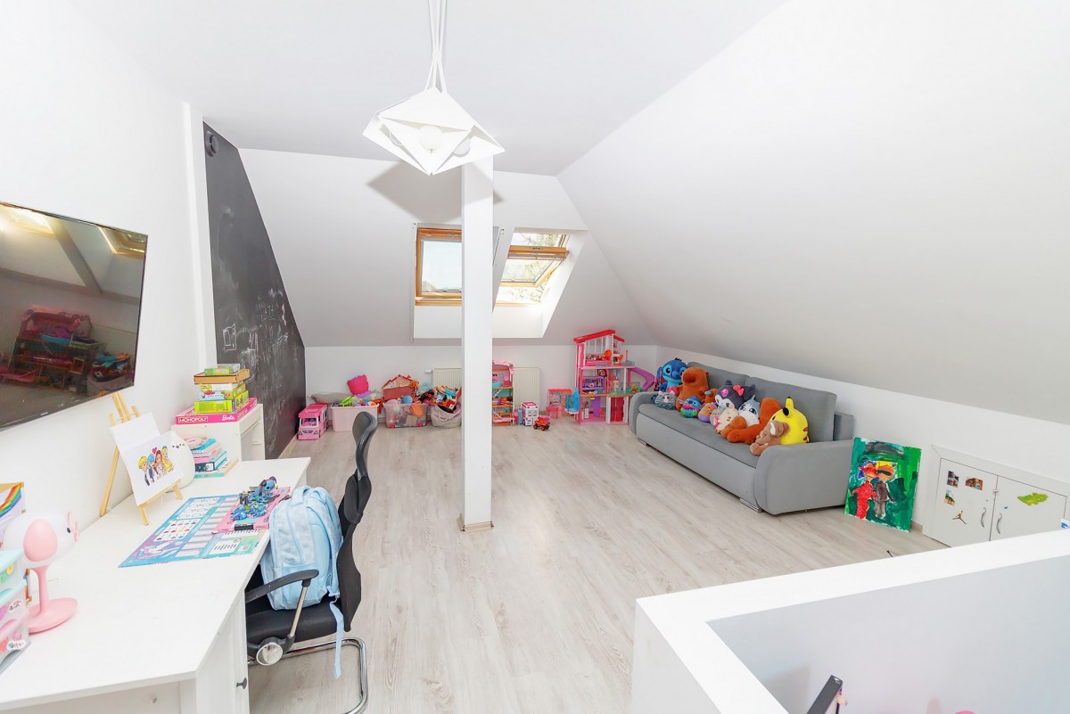 W bryle także osobne mieszkanie 2-pokojowe (dla dziadków? na biuro?), garaż dwustanowiskowy i piwnica ponad 50 m2 (sauna? siłownia? chill room?). Dom idealny dla dużej rodziny, dwóch pokoleń lub osób pracujących z domu.