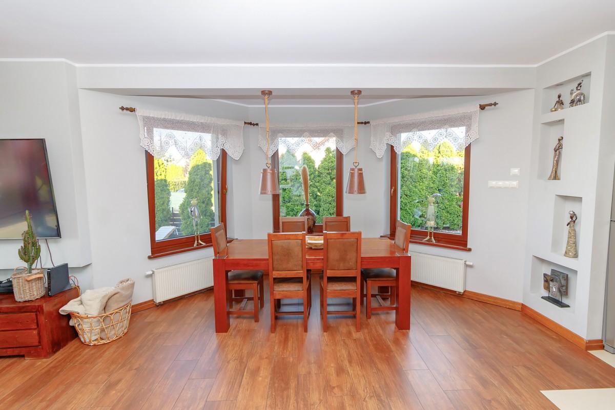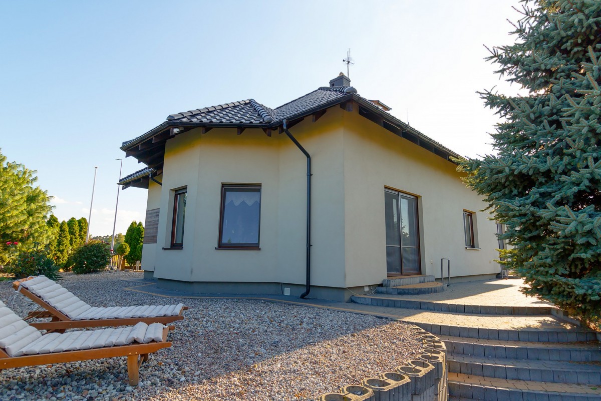 Dom z 2010 r., technologia tradycyjna, ogrzewanie z nowoczesnej i ekonomicznej kotłowni, fotowoltaika 7,92 kW. Wysoka jakość wykończenia, nowa łazienka na piętrze, zabudowa kuchni. W części dziennej salon z aneksem (55 m²), gabinet; na piętrze trzy olbrzymie sypialnie, w tym pokój małżeński z łazienką i garderobą.