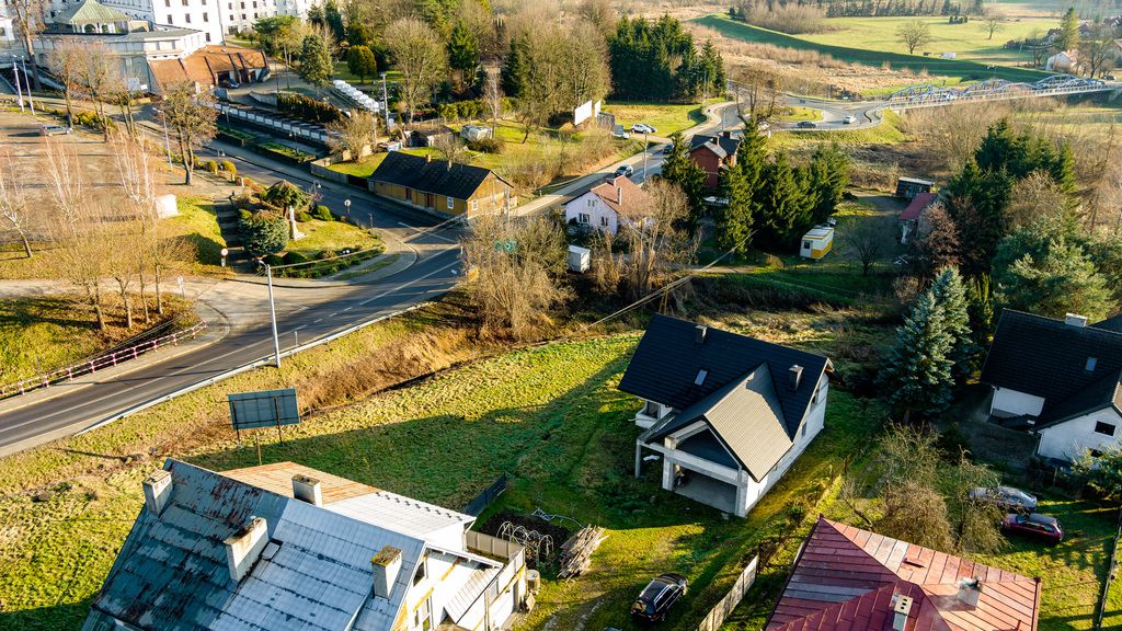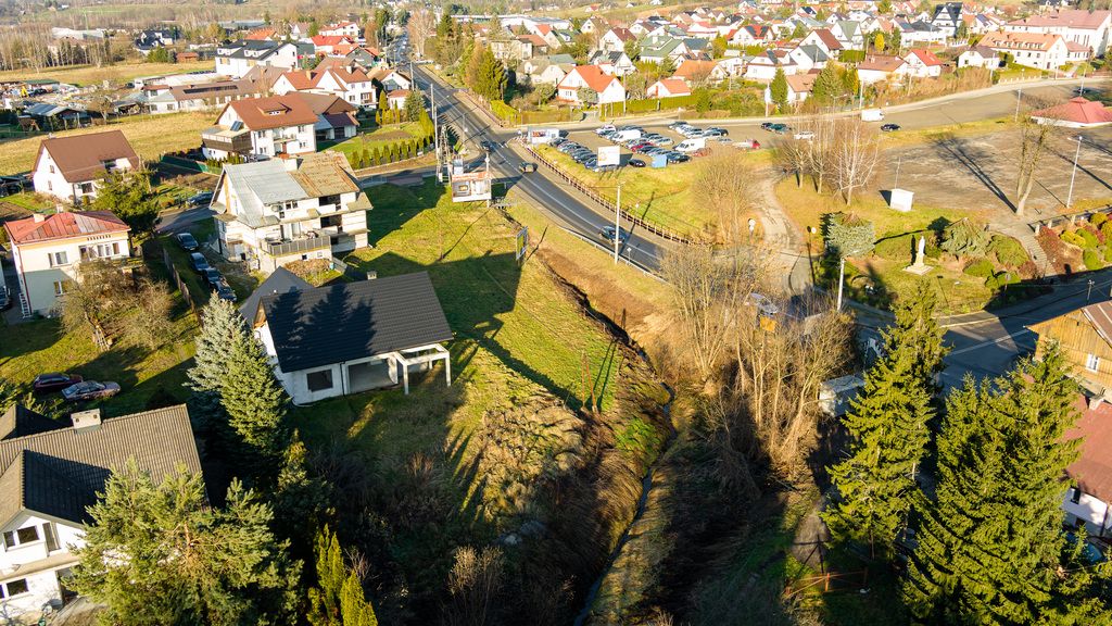 Dom posadowiony jest na działce o powierzchni ok. 1150 m², w sąsiedztwie zabudowy jednorodzinnej. Dodatkowym atutem jest oddzielna działka rekreacyjna (ok. 70 m²) położona nad rzeczką, idealna na miejsce wypoczynku lub mały ogródek.
