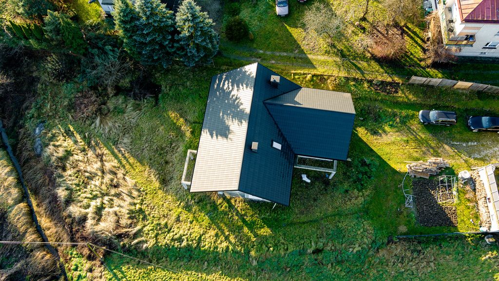 Budynek został wybudowany w 2020 roku z wysokiej jakości materiałów – solidna konstrukcja, więźba dachowa, dachówka, stropy betonowe. Stan surowy otwarty umożliwia przyszłemu właścicielowi dowolną aranżację wnętrz i wykończenie zgodnie z własnym gustem.
