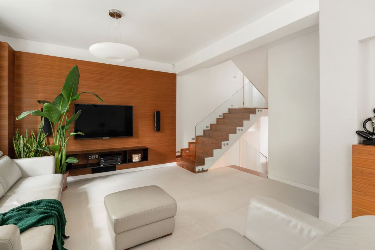 Wnętrza zostały urządzone w nowoczesnym stylu, łącząc funkcjonalność z elegancją i dbałością o detale.