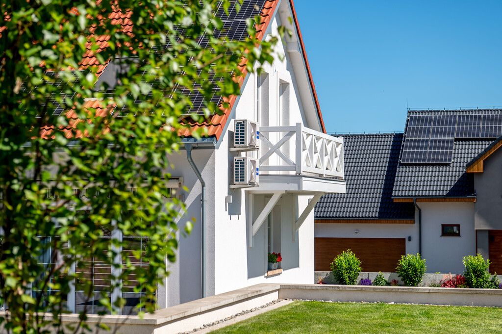 O ciepło zimą ( poza kominkiem ) dba ogrzewanie podłogowe dolnej części domu oraz łazienek, latem natomiast komfortowe temperatury zapewni wysokiej klasy klimatyzacja Haier ( która pełni także funkcje dogrzewania).