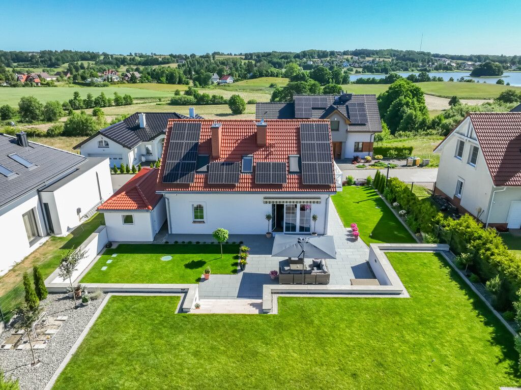 Piękny dom wolnostojący nad jeziorem Tuchomskim. Efektowny ogród, dwa garaże, osiedle zamknięte!