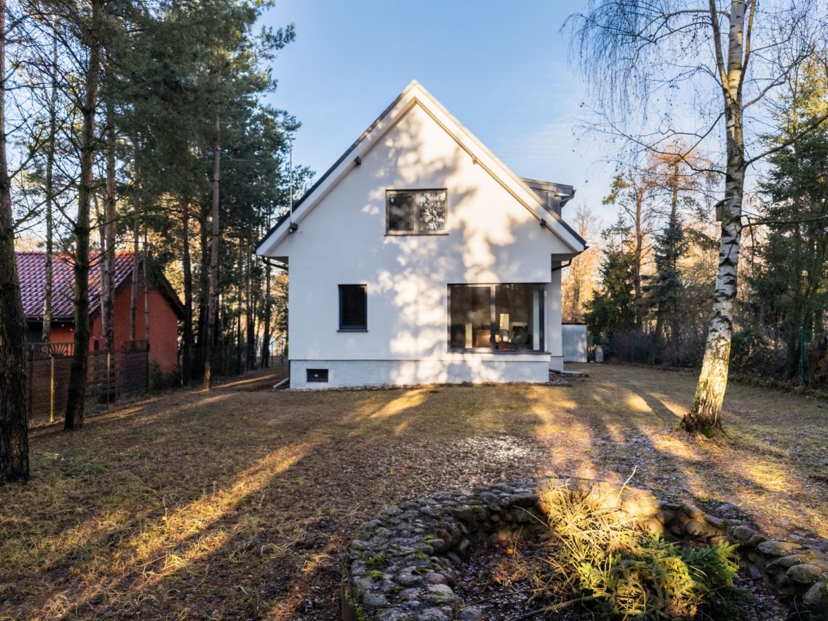 Duża działka położona wśród sosnowych drzew zapewnia prywatność i spokój, jakiego nie daje żadne miejskie osiedle.