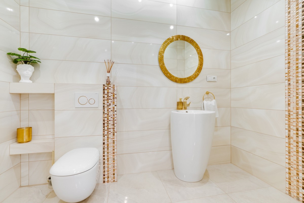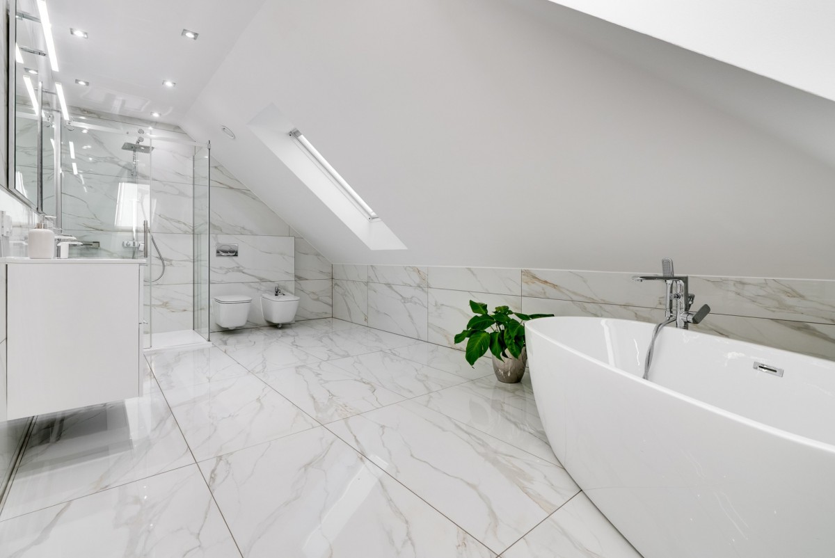 - Trzy łazienki - w tym dwie na piętrze i jedna gościnna na parterze;