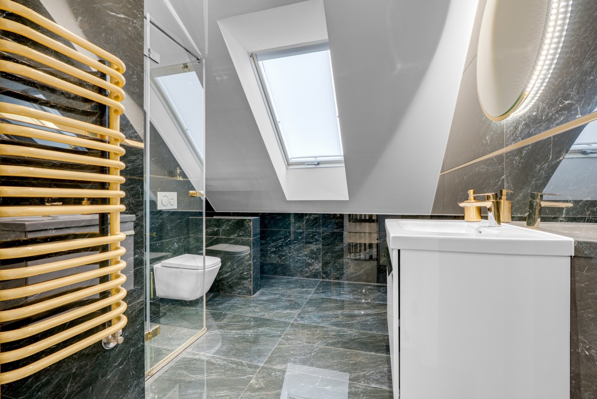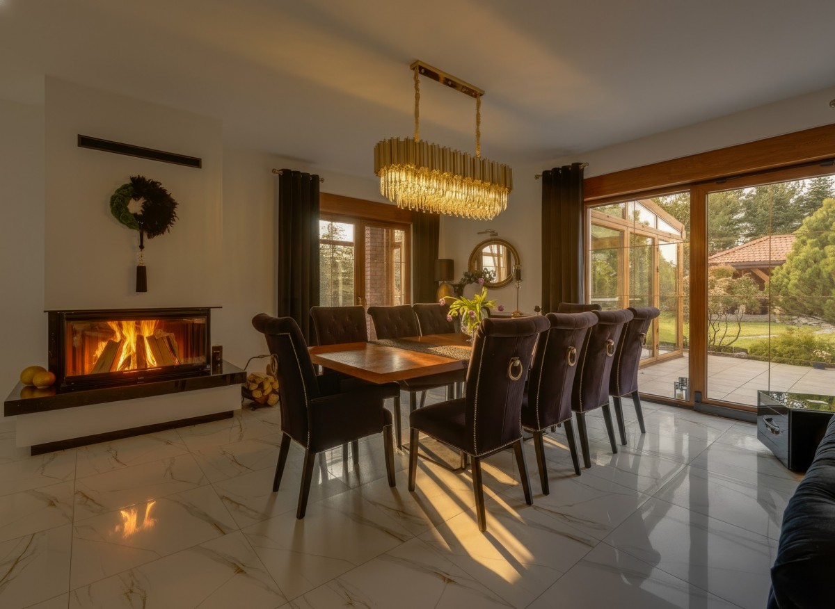 - Nowoczesny system ogrzewania - pompa ciepła wspierana instalacją solarną oraz kominek;
