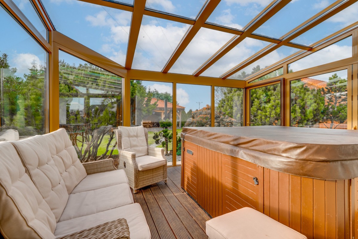 - Zadaszone jacuzzi w ogrodzie zimowym - gwarancja relaksu niezależnie od pogody;