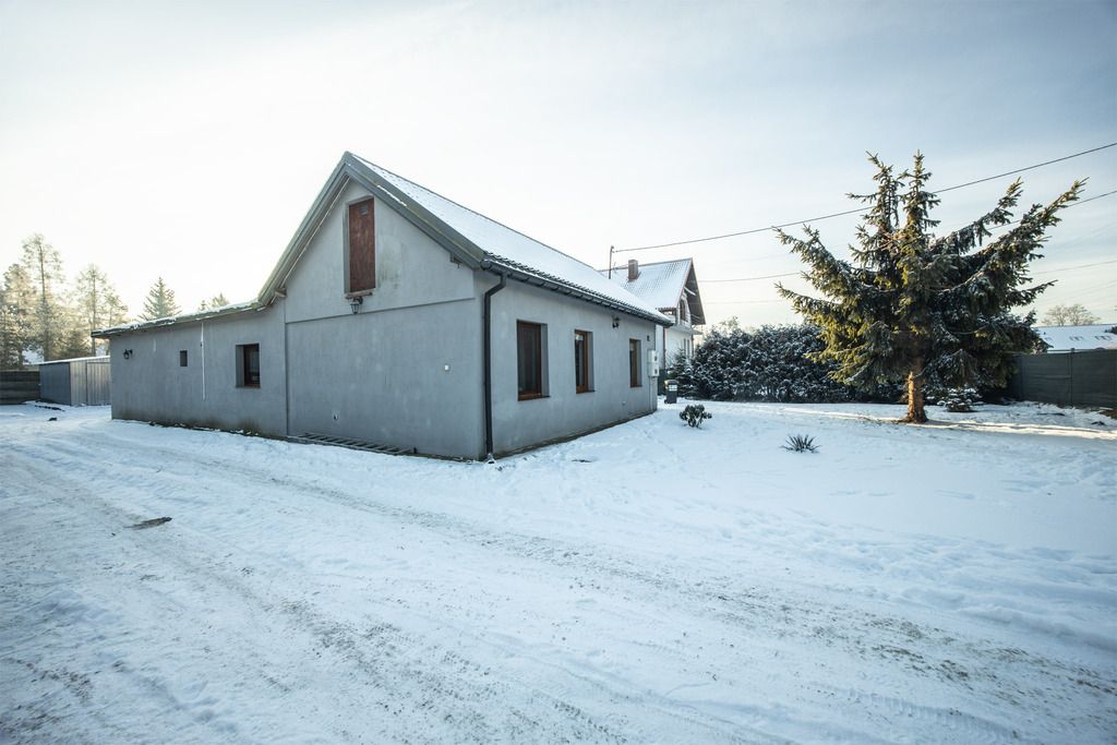 Na przestronnej, płaskiej działce o powierzchni 1256 m² znajduje się parterowy dom drewniany o powierzchni 83 m² z lat 60., który dziesięć lat temu przeszedł gruntowny remont.