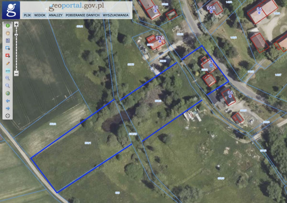 Posesja położona jest na trzech działkach opisanych w jednej księdze wieczystej:
