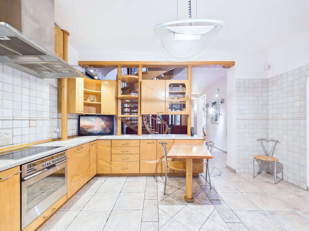 - The kitchen is built with solid wood furniture and equipped with Siemens appliances.