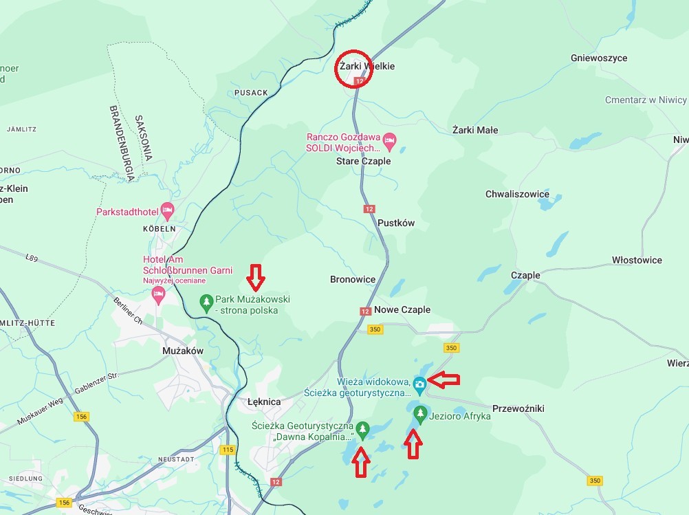 Dom położony jest w spokojnej miejscowości Żarki Wielkie, między Trzebielem a Łęknicą - zaledwie 7,5 km od Łęknicy, 25 km od Żar, 10 km od zjazdu na autostradę A18. Do granicy z Niemcami - błyskawiczny dojazd.