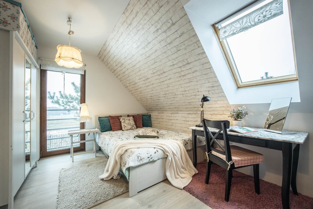 PiętroNa górze znajdują się 3 komfortowe sypialnie. Jedna z nich posiada