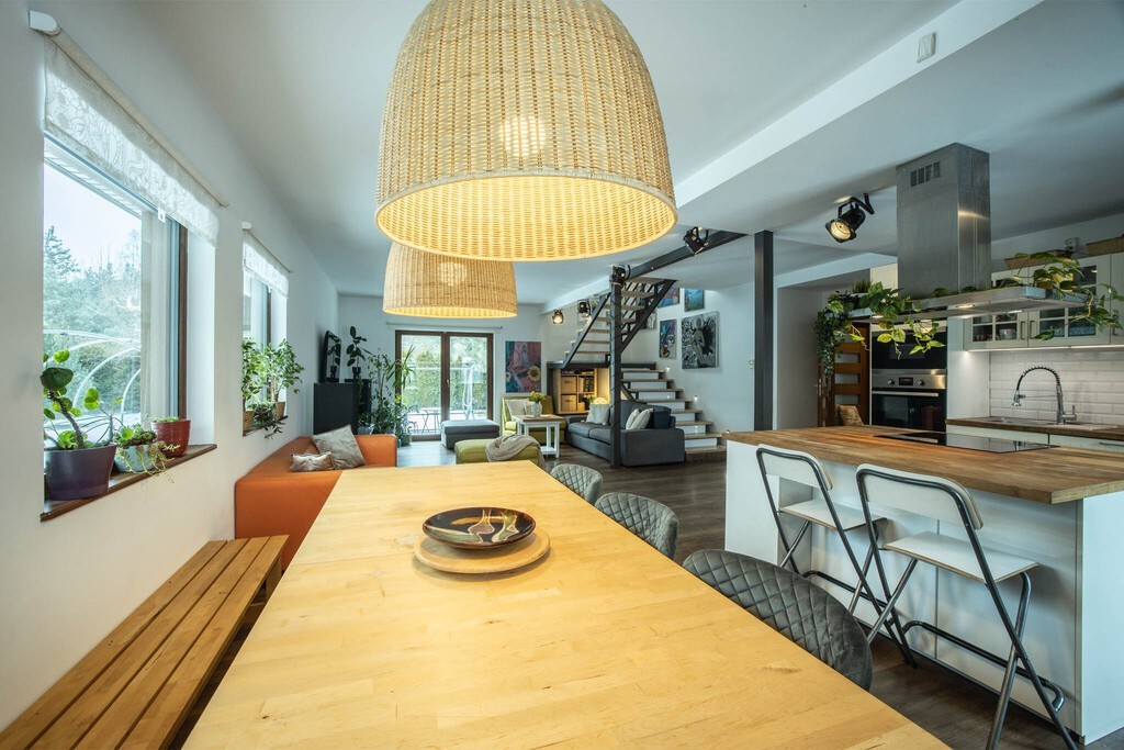 Przemyślany układ pomieszczeń zapewnia wygodę zarówno dla rodziny, jak i dla osób pracujących zdalnie.