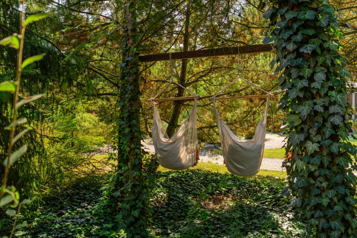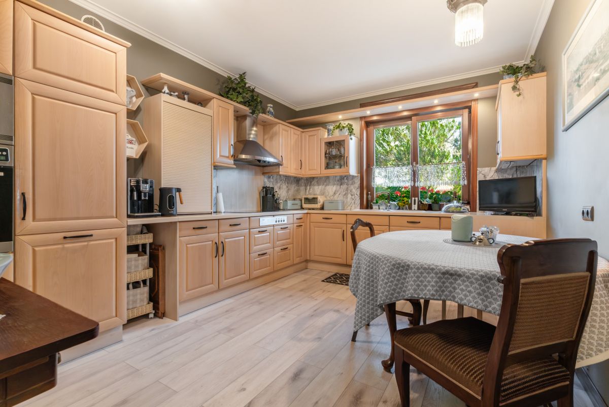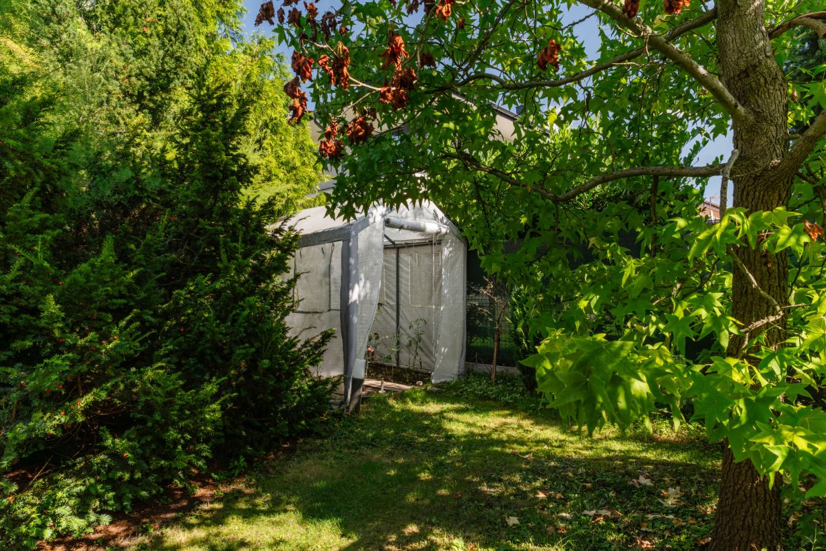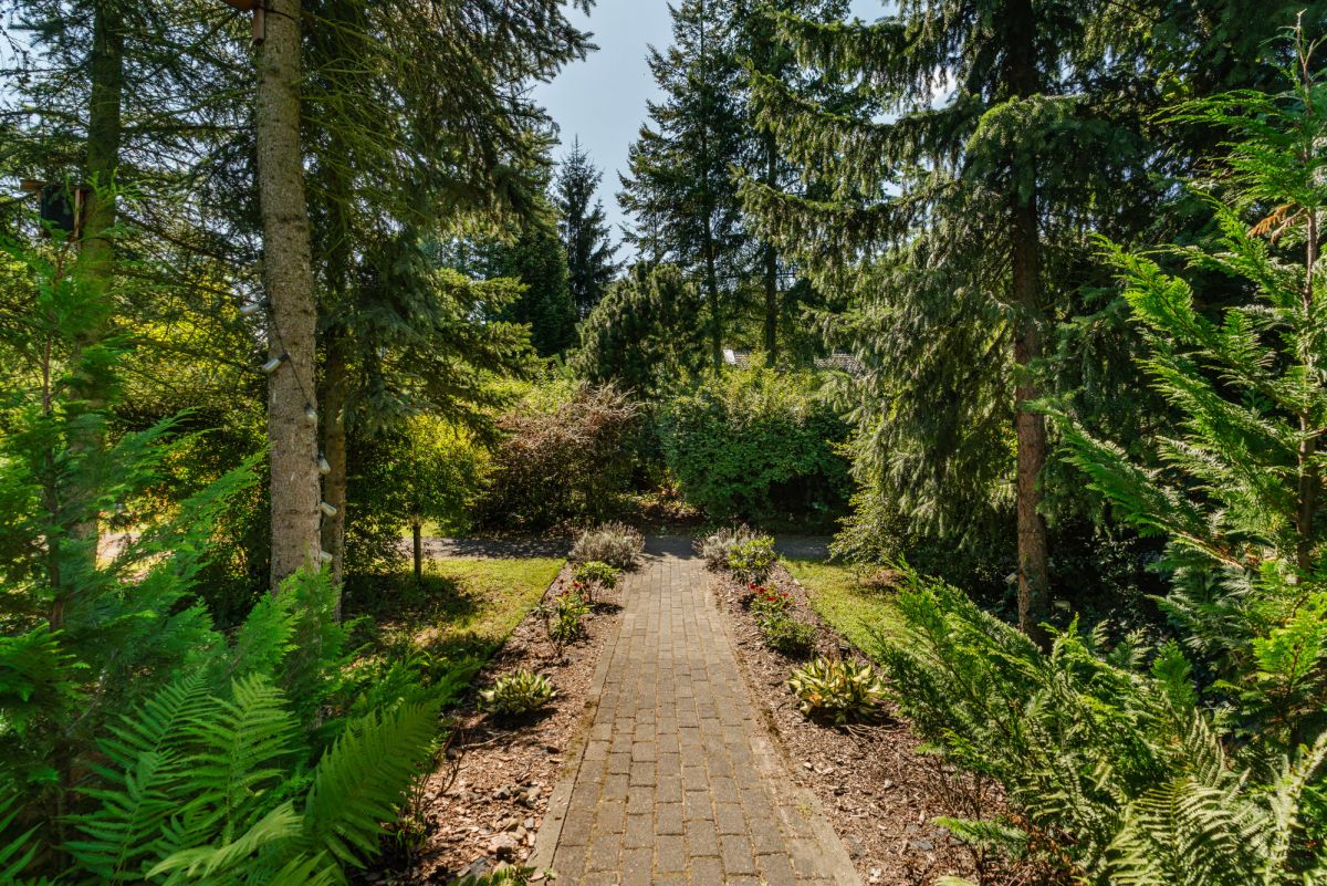 Jednym z największych atutów jest wyjątkowy, parkowy ogród z wieloletnimi nasadzeniami, altaną oraz domkiem narzędziowym. Przemyślana kompozycja zieleni zapewnia prywatność oraz naturalne strefy wypoczynku.