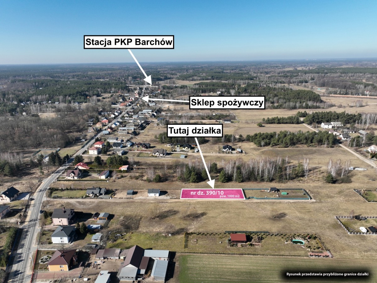 Na sprzedaż uzbrojona działka o powierzchni 1000 m2 z wydanym pozwoleniem na budowę, zlokalizowana w spokojnej i malowniczej miejscowości Barchów, gm. Łochów w woj. mazowieckim.