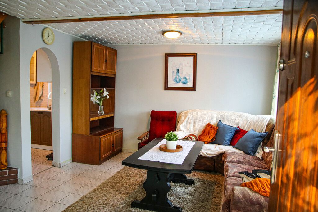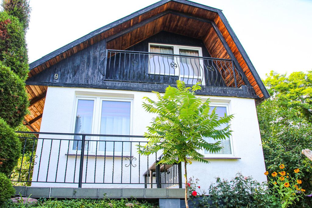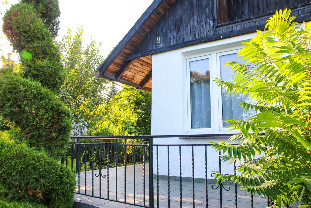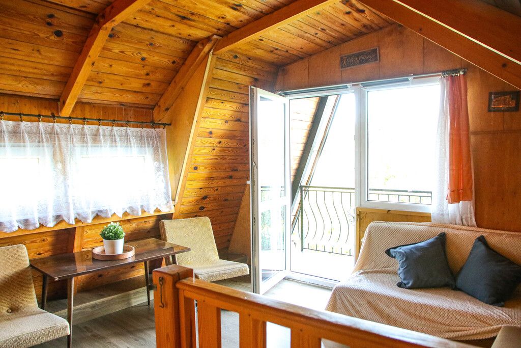 - Funkcjonalny domek letniskowy – W pełni wyposażony, utrzymany w stylu zakopiańskim, z przestronnym salonem, praktyczną kuchnią, łazienką oraz urokliwą sypialnią na poddaszu z dostępem do balkonu, z którego roztacza się widok na okolicę.