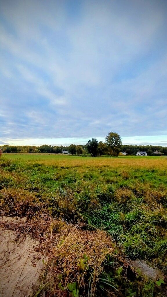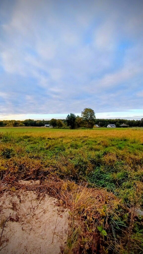 Jedna z granic działki sąsiaduje z otwartym polem, dzięki czemu nic nie zasłania widoku na zachód. To właśnie ten szczegół sprawia, że miejsce ma wyjątkowy klimat — można tu podziwiać zachody słońca, cieszyć się ciszą i poczuciem przestrzeni, której tak często brakuje w mieście.