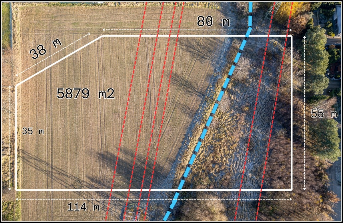 Działka sklasyfikowana jest jako grunty orne o klasie użytku RIVa (5 705 m2) oraz grunty pod rowami W-RIVa (174 m2).