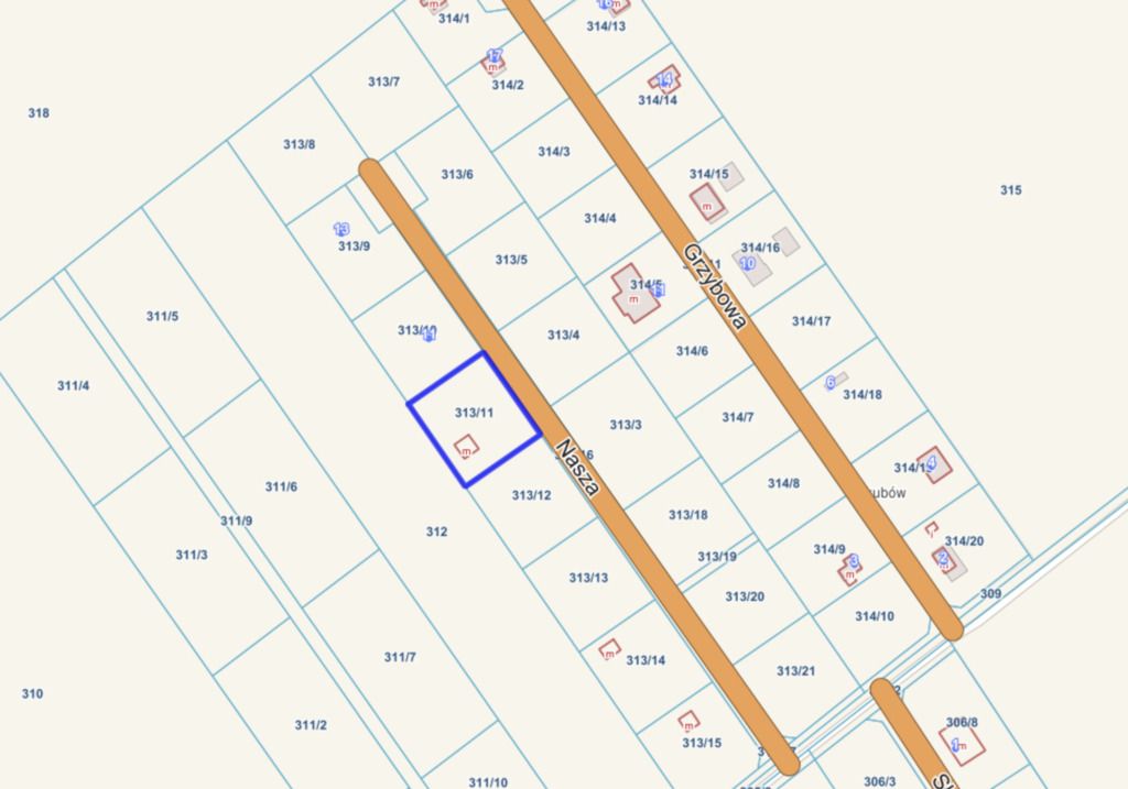 - płaski, prostokątny teren o wymiarach 34 x 30,6 m – łatwy do zabudowy i zagospodarowania,