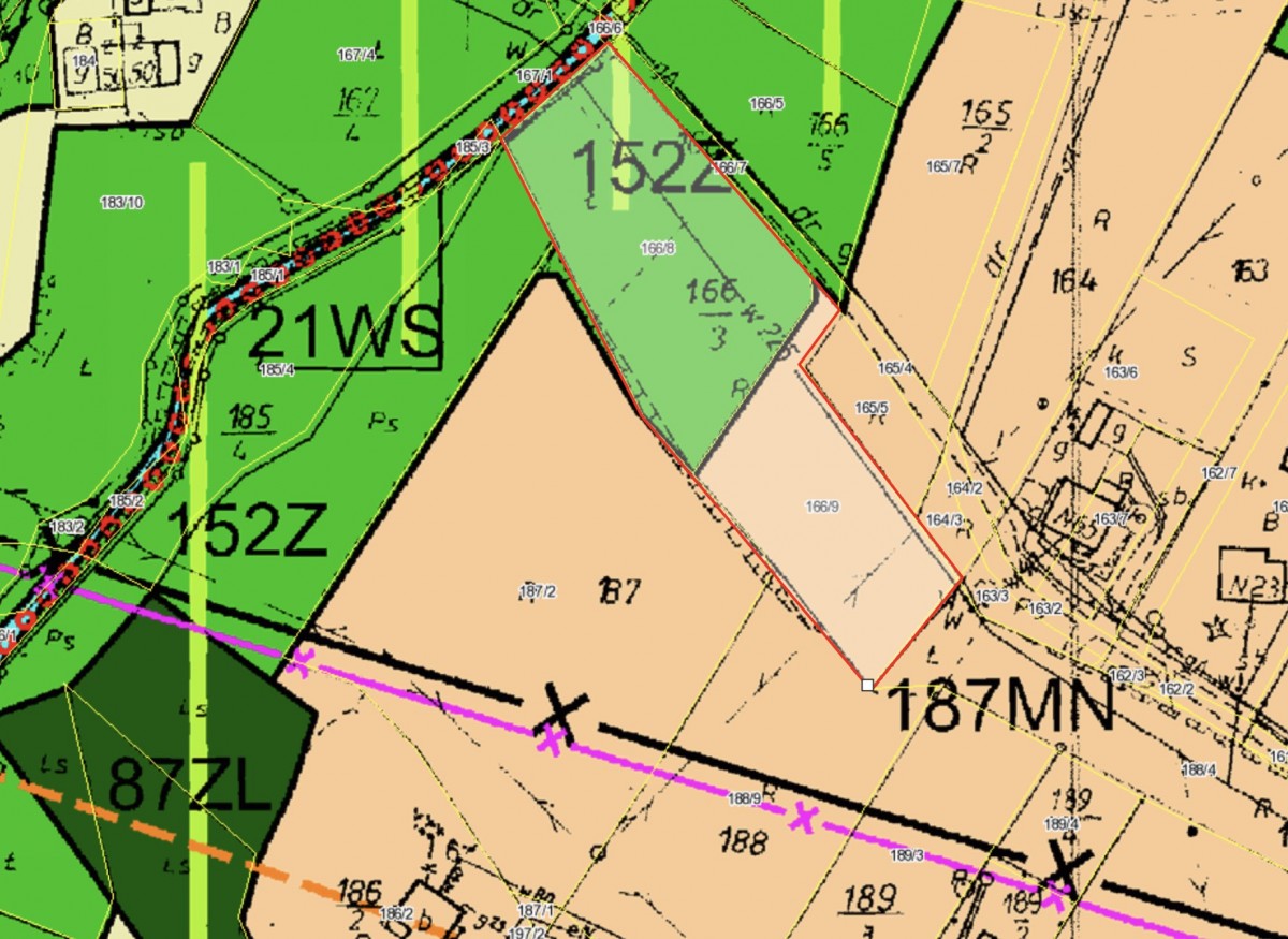 Działka 166/8 - teren oznaczony jako Z - zielony, stanowiący idealne uzupełnienie części inwestycyjnej (np. ogród, część rekreacyjna)