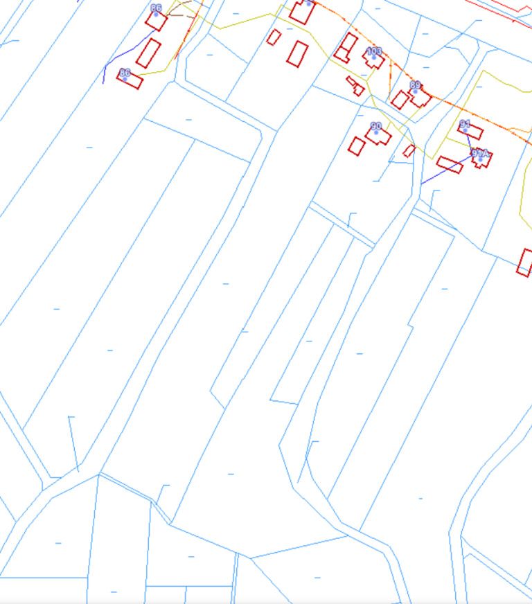 The plot is located in a quiet, green area—ideal for recreation, investment, or agricultural activities. The surrounding area is sparsely populated with single-family homes and access to green spaces.