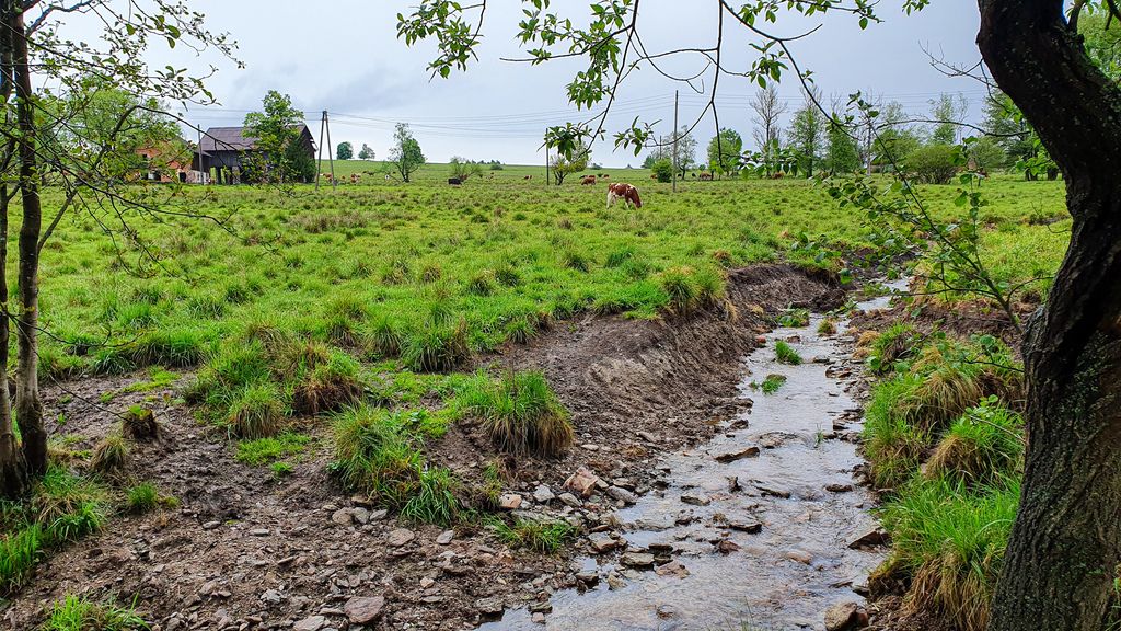 Naturalne otoczenie: z jednej strony działki graniczą z niewielkim strumykiem – gwarancja ciszy, świeżego powietrza i pięknych widoków.